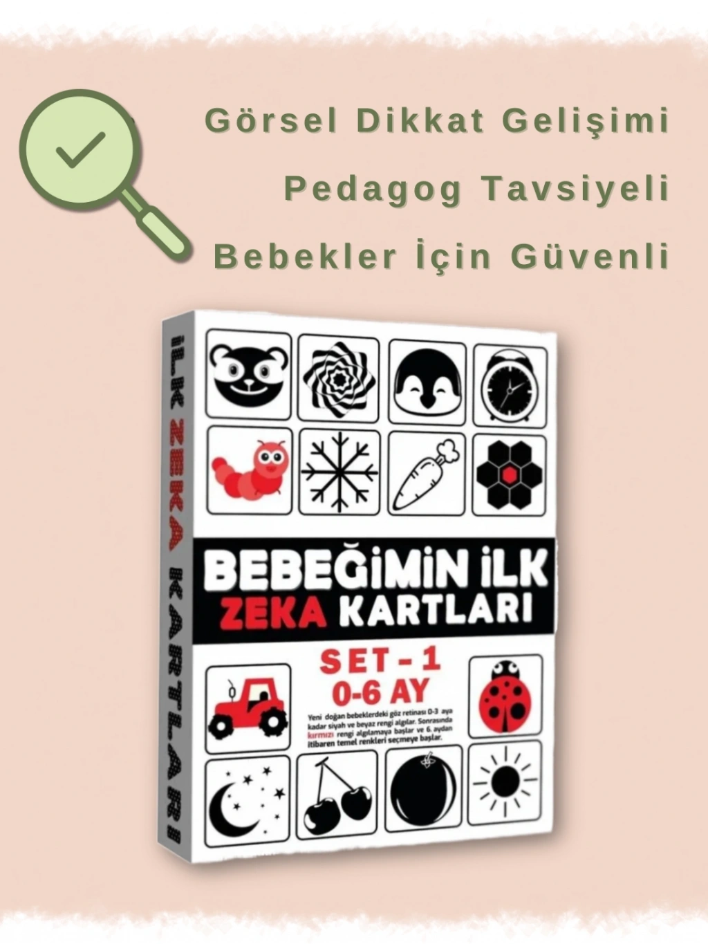 Kartlardaki yüksek kontrastlı görseller, yenidoğanların ve küçük bebeklerin henüz tam gelişmemiş görme duyusunu uyararak — görsel algı ve dikkat gelişimini destekler.