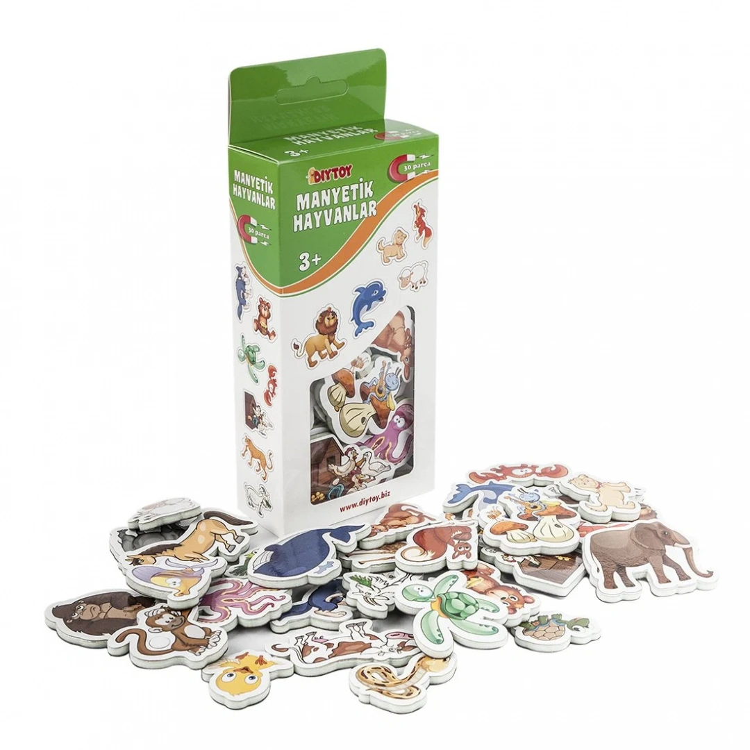 Diytoy Manyetik Hayvanlar seti, çocukların hayvanları tanımasını, oynamasını ve öğrenmesini eğlenceli hâle getiren manyetik figürlerden oluşan bir oyuncak setidir. Manyetik yapısı sayesinde parçalar buzdolabı, manyetik yazı tahtası ya da metal yüzeyler üzerinde kolayca yapışır; bu sayede çocuklar hem evde hem de okul-öncesi ortamda hayvanları tanıma, eşleştirme, gruplama gibi oyunlarla öğrenim deneyimi yaşayabilir. Renkli ve çekici hayvan illüstrasyonları, çocukların dikkatini çekerken — el-göz koordinasyonu, kavram tanıma ve görsel hafıza gibi becerilerini de destekler. Oyun ve öğrenmeyi birleştiren bu set, 3 yaş ve üzeri çocuklar için ideal bir başlangıç seti olarak öne çıkar.