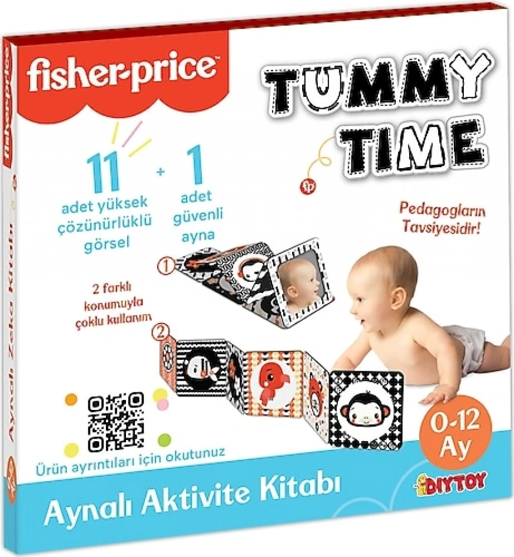 Fisher-Price Tummy Time Aynalı Aktivite Kitabı, bebeklerin 0–12 ay dönemindeki görsel, duyusal ve motor gelişimini desteklemek için özel olarak tasarlanmıştır. Karın üstü zaman (tummy time) sırasında kullanılmak üzere hazırlanan bu aktivite kitabı; 11 adet dikkat çekici görsel ve 1 adet güvenli bebek aynası ile bebeğin ilgisini uzun süre canlı tutar.